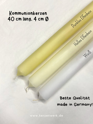 Kerze Kerzenrohling Kommunion Kommunionkerze 40 cm | drei Farben | weiß elfenbein
